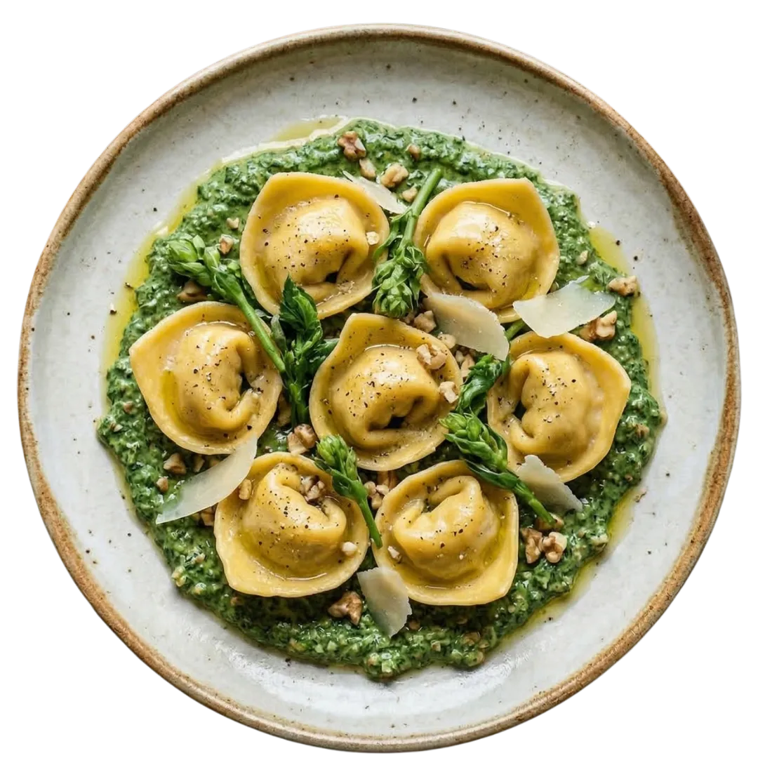 I primi piatti portano in tavola le erbe spontanee e i sapori dei nostri campi: un classico risotto con asparagi bianchi e verdi e i nostri cappellacci, dove l'amaro gentile di bruscandoli e carletti si sposa con la cremosità delle ortiche e la nota croccante delle noci.