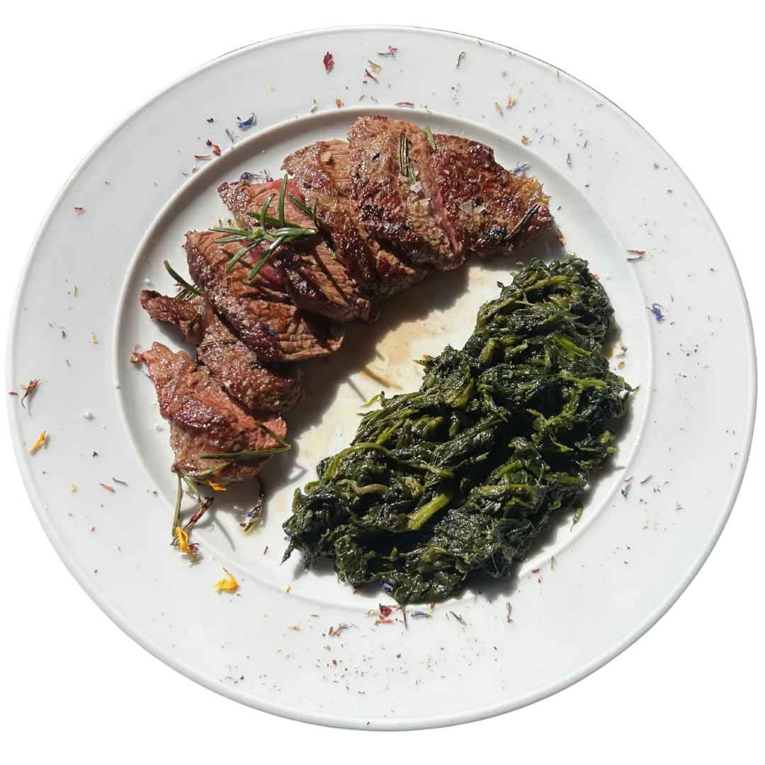 Per i secondi, onoriamo la tradizione con le costine d’agnello grigliate accompagnate da patate al forno dorate, a cui affianchiamo una succosa tagliata di scottona servita con i mugnoli selvatici di campo, per un secondo piatto di carattere e sostanza.